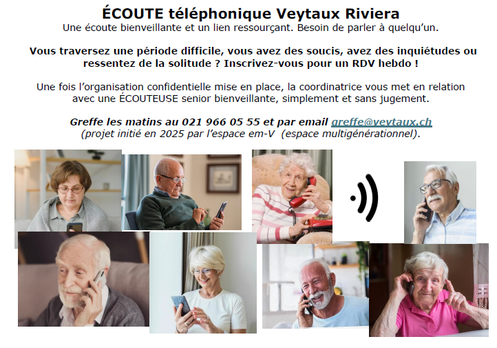 Chaque dernier mardi du mois de 15h à 17h, la coordinatrice vous accueille, sur rendez-vous, pour échanger sur vos idées, ce que vous aimeriez trouver dans ce lieu et les activités que vous souhaiteriez peut être animer. Les rendez-vous sont pris via l'adresse mail animation@veytaux.ch